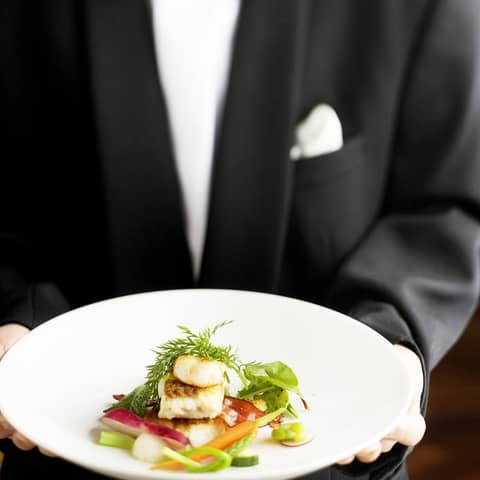 スタッフが食事の進行に合わせて料理をサーブ。出来立ての料理をゆっくりとお楽しみいただけます