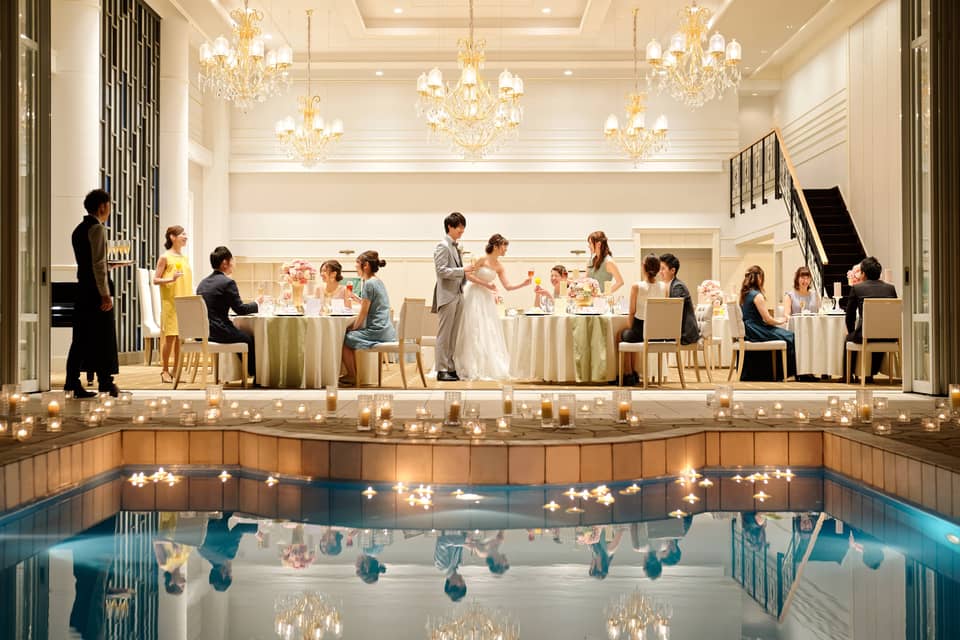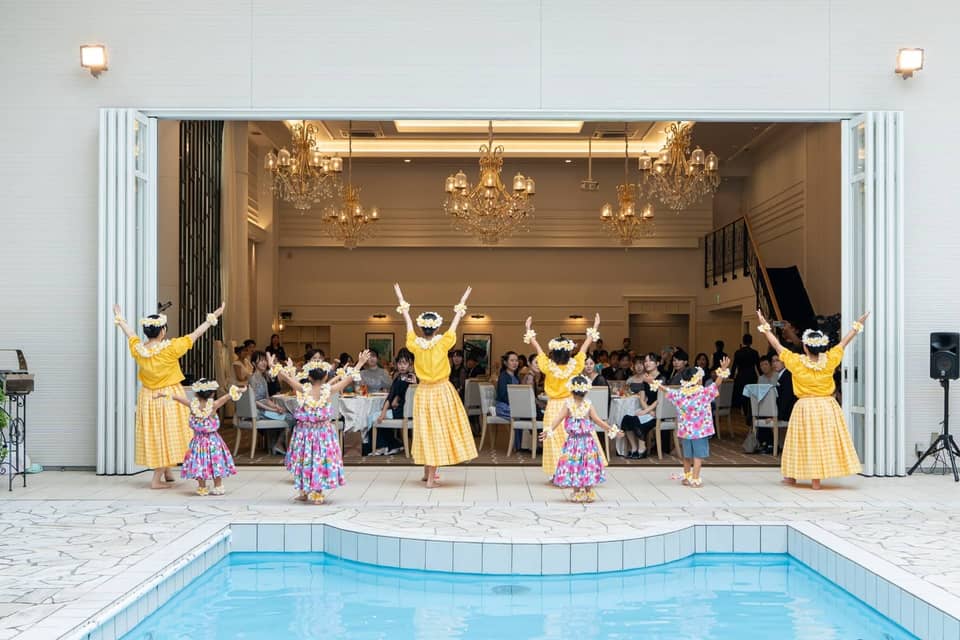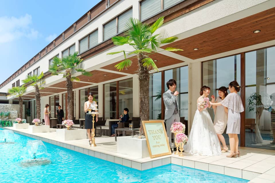 ザ・パームガーデンの2つのパーティ会場にはプール付きガーデンを併設。水の音が涼しさを演出します